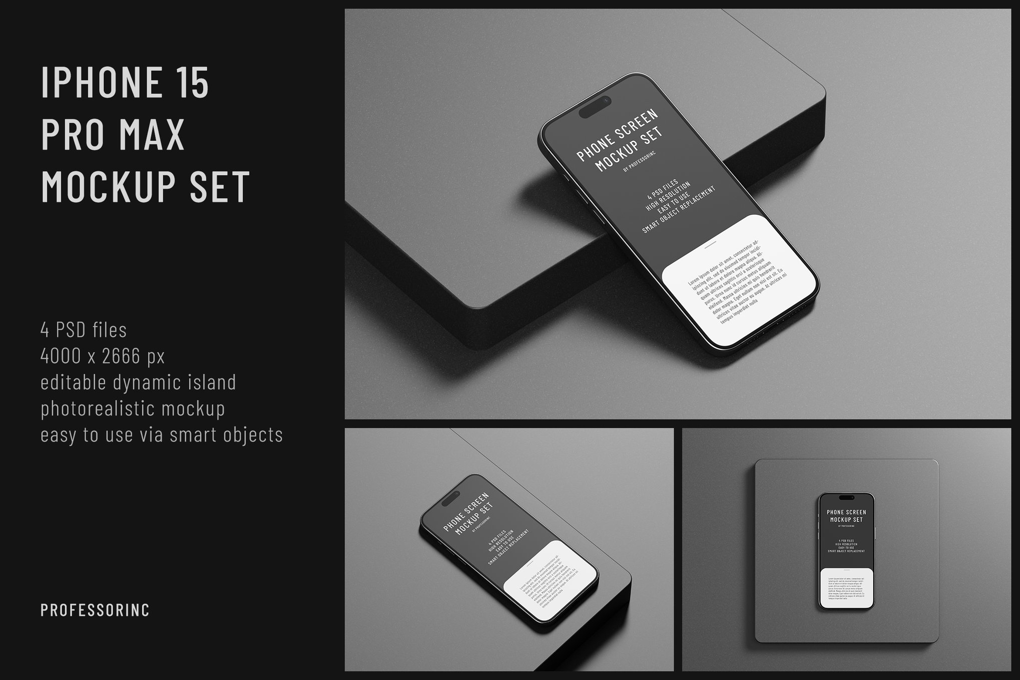 iPhone 15 Pro Max屏幕样机组合 iPhone 15 Pro Max Screen Mockup Set