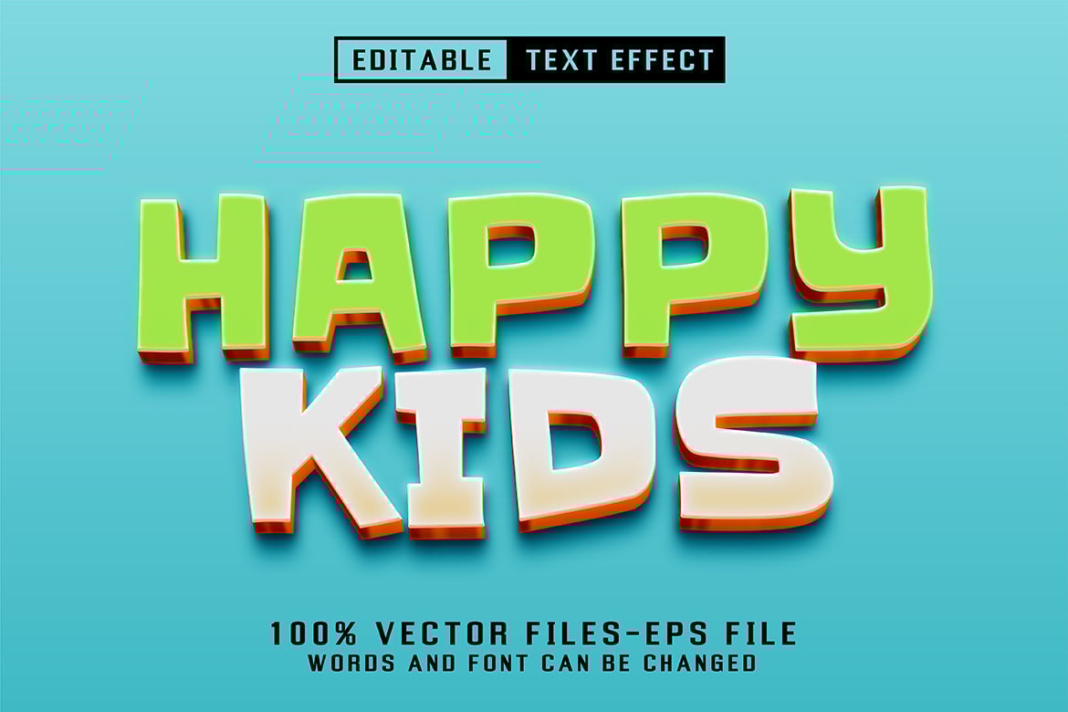 快乐儿童3D立体AI文字效果矢量素材 Happy Kids 3d Editable Text Effect