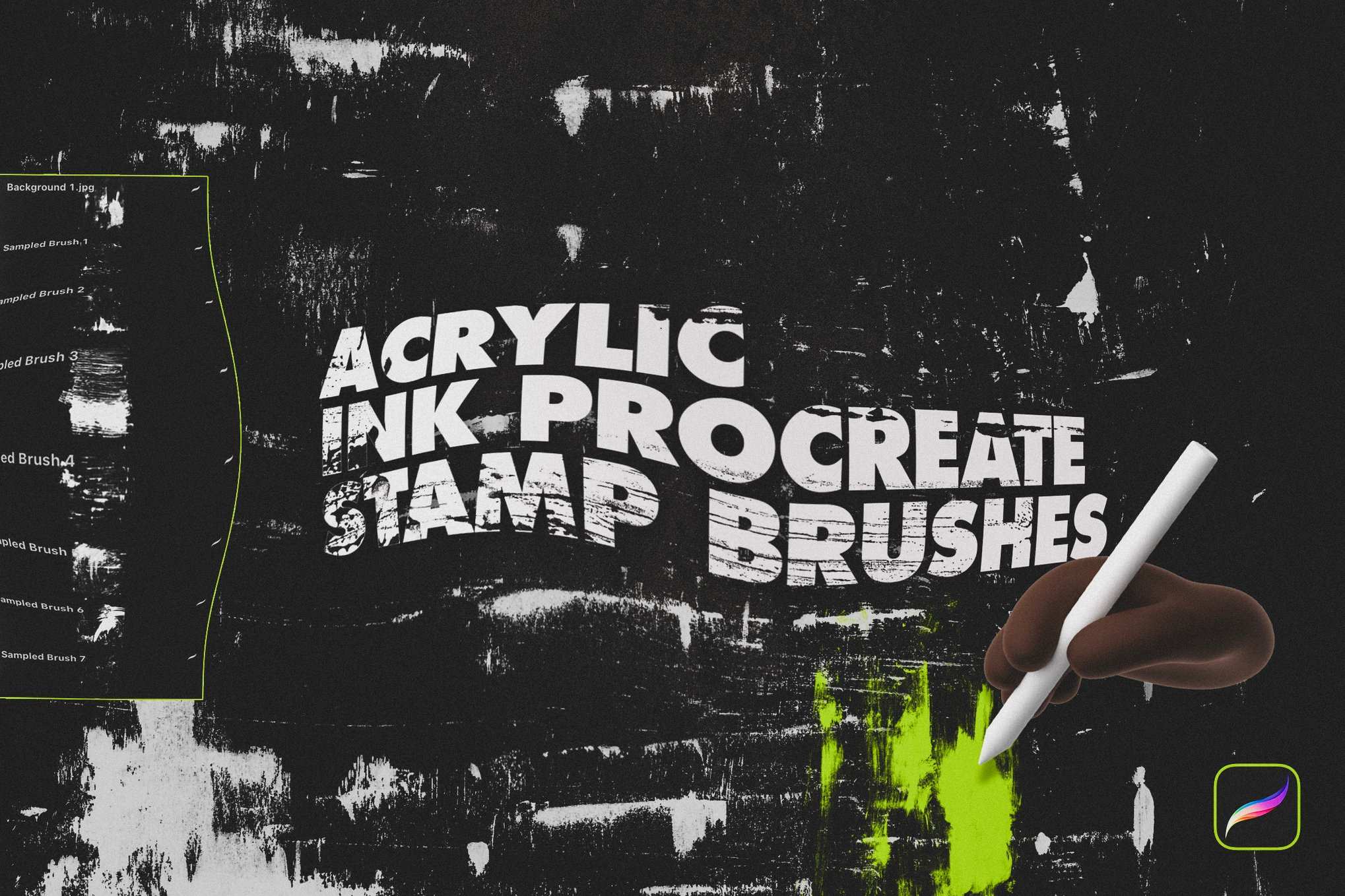丙烯墨水效果印章图案笔刷 Acrylic Ink Procreate Stamp Brushes
