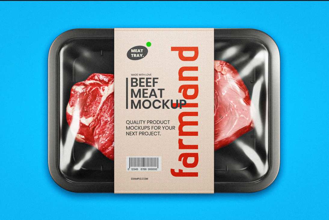 新款肉类托盘包装样机素材 meat tray packaging mockup template